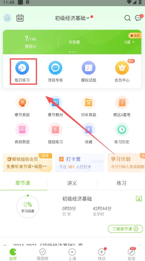 1、首先进入软件在自学页面点击每日练习